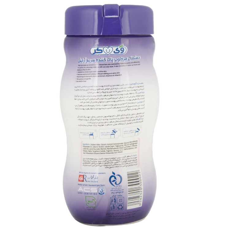 اگر به دنبال ساده ترین روش برای پاک کردن صورتتان از آلودگی و آرایش هستید، دستمال مرطوب پاک کننده آرایش وی کر یکی از بهترین گزینه ها است چرا که بدون نیاز به آب و مواد شوینده به راحتی پوست را تمیز و آرایش را پاک می کند. این دستمال نیازی به همراهی شیر پاک کن و یا صابون ندارد و فقط کافی است روی پوست کشیده شود تا آلودگی ها را جذب کند. دستمال مرطوب پاک کننده صورت وی کر فاقد الکل ، SLS، مواد رنگی و صابون است و مناسب انواع پوست ها، حتی پوست های حساس می باشد. این دستمال مرطوب می تواند به راحتی و سریع، آرایش صورت، دور چشم، لب و حتی آرایشهای ضد آب را پاک کند و به دلیل داشتن عصاره آلوئه ورا در بافتهای دستمال، پوست را مرطوب و نرم می کند. دستمال مرطوب پاک کننده آرایش سیلندری وی کر حاوی عصاره آلوئه ورا، ویتامین E و آلانتوئین است و دارای Ph سازگار با پوست می باشد. این دستمال مرطوب ضد التهاب، ضد سوزش و خارش، آبرسان و مرطوب کننده می باشد و به دلیل دارا بودن عصاره آلوئه ورا سرشار از ویتامین A، B، C، D، E بوده که این ویتامین ها به ویژه ویتامین E موجب محافظت پوست در برابر اشعه UV می شود. این دستمال مرطوب به دلیل داشتن آلانتوئین دارای خاصیت ترمیم کنندگی و لایه برداری ملایم پوست است و محرک تولید کلاژن پوست نیز می باشد. موارد موثر درتولید این محصول به شرح زیر میباشد : عصاره آلوئه ورا: آلوئه ورا حاوی پلی ساکاریدهایی است که پوست را آبرسانی میکند، دارای خواص ضد التهاب است و میتواند مانند یک محافظ برای پوست عمل کند. هم چنین این پلی ساکاریدها باعث تسکین دادن به خارش و سوزشهای پوستی میشود. ژل آلوئه ورا دارای ترکیبات زیست فعال است که سرشار از ویتامین A، B، C، D، E می باشد. آلانتوئین: در محصولات پوستی خاصیت مرطوب کنندگی، ترمیم کنندگی، تسکین دهنده و ضد التهاب دارد و همچنین، فیبروبلاستها که مسئول تولید کلاژن هستند را تحریک میکند. آلانتوئین یک عامل کراتولیتیک است؛ این یعنی میتواند سلولهای مرده را لایه برداری کند. از دیگر فواید آلانتوئین برای پوست کمک به رفع اگزما از طریق رطوبترسانی و رفع خارش پوست است. این ماده، سلولهای مرده و آسیب دیده را لایهبرداری میکند و باعث بهبود بافت پوست میشود.
