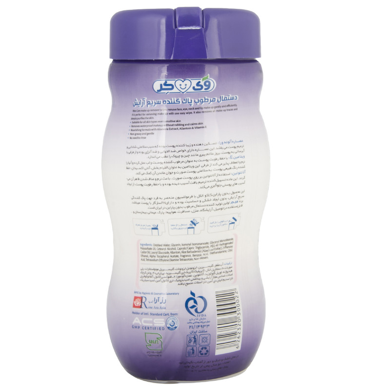 اگر به دنبال ساده ترین روش برای پاک کردن صورتتان از آلودگی و آرایش هستید، دستمال مرطوب پاک کننده آرایش وی کر یکی از بهترین گزینه ها است چرا که بدون نیاز به آب و مواد شوینده به راحتی پوست را تمیز و آرایش را پاک می کند. این دستمال نیازی به همراهی شیر پاک کن و یا صابون ندارد و فقط کافی است روی پوست کشیده شود تا آلودگی ها را جذب کند. دستمال مرطوب پاک کننده صورت وی کر فاقد الکل ، SLS، مواد رنگی و صابون است و مناسب انواع پوست ها، حتی پوست های حساس می باشد. این دستمال مرطوب می تواند به راحتی و سریع، آرایش صورت، دور چشم، لب و حتی آرایشهای ضد آب را پاک کند و به دلیل داشتن عصاره آلوئه ورا در بافتهای دستمال، پوست را مرطوب و نرم می کند. دستمال مرطوب پاک کننده آرایش سیلندری وی کر حاوی عصاره آلوئه ورا، ویتامین E و آلانتوئین است و دارای Ph سازگار با پوست می باشد. این دستمال مرطوب ضد التهاب، ضد سوزش و خارش، آبرسان و مرطوب کننده می باشد و به دلیل دارا بودن عصاره آلوئه ورا سرشار از ویتامین A، B، C، D، E بوده که این ویتامین ها به ویژه ویتامین E موجب محافظت پوست در برابر اشعه UV می شود. این دستمال مرطوب به دلیل داشتن آلانتوئین دارای خاصیت ترمیم کنندگی و لایه برداری ملایم پوست است و محرک تولید کلاژن پوست نیز می باشد. موارد موثر درتولید این محصول به شرح زیر میباشد : عصاره آلوئه ورا: آلوئه ورا حاوی پلی ساکاریدهایی است که پوست را آبرسانی میکند، دارای خواص ضد التهاب است و میتواند مانند یک محافظ برای پوست عمل کند. هم چنین این پلی ساکاریدها باعث تسکین دادن به خارش و سوزشهای پوستی میشود. ژل آلوئه ورا دارای ترکیبات زیست فعال است که سرشار از ویتامین A، B، C، D، E می باشد. آلانتوئین: در محصولات پوستی خاصیت مرطوب کنندگی، ترمیم کنندگی، تسکین دهنده و ضد التهاب دارد و همچنین، فیبروبلاستها که مسئول تولید کلاژن هستند را تحریک میکند. آلانتوئین یک عامل کراتولیتیک است؛ این یعنی میتواند سلولهای مرده را لایه برداری کند. از دیگر فواید آلانتوئین برای پوست کمک به رفع اگزما از طریق رطوبترسانی و رفع خارش پوست است. این ماده، سلولهای مرده و آسیب دیده را لایهبرداری میکند و باعث بهبود بافت پوست میشود.
