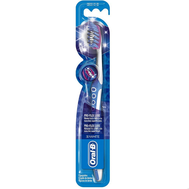 مسواک اورال بی سری Pro-Flex مدل 3D White Luxe با برس نرم دارای الیاف Power Tip جهت دسترسی بیشتر به نقاط دور از دسترس دهان می باشد و یک ویژگی منحصر به فرد را نیز داراست که با کم رنگ شدن الیاف نشانگر آبی می توان زمان تعویض مسواک را تشخیص داد. همچنین این محصول دارای الیاف متقاطع با زاویه 15 درجه (CrissCross) می باشد که به سطوح بین دندانها بهتر نفوذ کرده و در مقایسه با مسواکهای معمولی مقدار بیشتری پلاک را از بین دندانها برمیدارد.