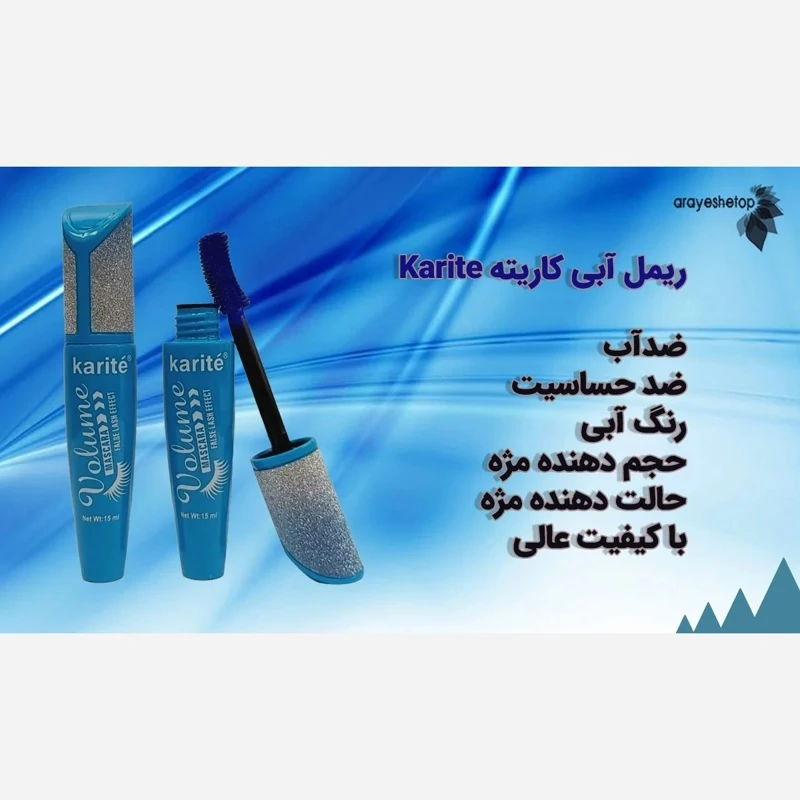 ریمل رنگ آبی کاریته Karite volume Mascara 🌟کاملا ضدآب 🌟حجم دهنده فوق العاده 🌟ایجاد جلوه ای فانتزی و خاص 🌟مناسب مهمانی و مراسم ویژه 🌟کیفیت و ماندگاری بالا 🌟ضد حساسیت 🌟بدون ایجاد سیاهی زیر چشم 🌟ماندگاری بالا 🌟ریمل ژله ای ویژه تک تک کردن مژها 🌟اورجینال 🌟🌟مشخصات ریمل آبی کاریته🌟🌟 مناسب برای مهمانی و مجالس به چشمها و آرایش شما جذابیت خاصی بخشیده و با خاصیت ضد آب و ماندگاری بالای این ریمل دیگر نگران ازبین رفتن و ریختن ریمل در زیر چشم خود نباشید. برس خاص و بزرگ مویی این ریمل باعث پوشش کامل تارهای مژه شده و از چسبیدگی آنها به هم جلوگیری میکند و بدلیل بافت سبک مواد ریمل هیچگونه سنگینی روی پلک خود احساس نخواهید کرد. این ریمل به راحتی با آرایش پاک کن های چشم پاک می شود. این محصول ضد حساسیت می باشد و برای کسانی که از لنز استفاده می کنند مناسب است. این ریمل کامل کننده ی آرایش صورت است و ظاهری منحصر به فرد می بخشد