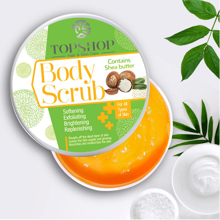 برای این که پوست بدن شادابی و تازگی خود را حفظ کند، لازم است که سلولهای مرده از لایههای رویی برداشته شوند و سلولهای جدید و شاداب در سطح پوست باقی بمانند.یکی از روشهای لایه برداری پوست استفاده از اسکراب بدن است.در اصل اسکراب لایه بردار و ترکیبی از مواد مختلف با دانههای ریز یا گرانولهایی است که کمی ساختار آن را زبرتر میکند تا بتواند اضافات پوستی را به راحتی از روی پوست جدا کند.روند لایه برداری اسکراب بدن تاپ شاپ حاوی روغن شی باتر با بافت ژلی که دارد برخلاف خیلی از روشهای لایه برداری پوست دیگر تهاجمی نیست، سوزش ندارد و حتی پس از شستشو باعث لطیف شدن و نرمی بیشتر پوست میشوند. ژل اسکراب بدن تاپ شاپ حاوی روغن شی باتر محصولی بی نظیر است که با ترکیب دانه های شکر و نمک بافتی ملایم و موثری دارد که به آرامی لایه مرده را از سطح پوست پاک کرده و باعث از بین رفتن آلودگی ها و چربی های اضافی پوست از داخل منافذ پوست شده و ضمن جلوگیری از بروز آکنه و جوش باعث رطوبت رسانی عمیق و قوی به پوست می شود. همچنین می تواند در کاهش موهای زیر پوستی و کاهش سلولیت بدن تاثیرگذار باشد. این اسکراب دارای فرمولاسیون پیشرفته حاوی روغن های شی باتر، نارگیل و آواکادو بوده و پوست را عمیقا تغذیه نموده، به آن نرمی و لطافت می بخشد همچنین جهت آبرسانی و رفع خشکی پوست در این محصول عصاره آلوئه ورا استفاده شده است.سلولهای مرده پوست، چربیهای طبیعی بدن، استفاده از لوازم آرایشی و گرد و غبار و ذرات آلوده در هوا میتوانند منافذ پوست شما را ببندند. با استفاده از ژل اسکراب بدن تاپ شاپ حاوی روغن شی باتر که همانند لایه بردارملایم پوست عمل می کند، میتوانید همه این ذرات را پاک کنید و باعث شوید درمانهای پوستی و مواد مراقبت از پوست که استفاده می کنید اثربخشی بیشتر داشته و پوست شما روشنتر و شفافتر به نظررسد و احساس تمیزی بیشتری داشته باشید. با استفاده دورهای و منظم این محصول جای جوش، آکنه و خشکی مزمن پوست بدن شما برطرف میشود.شما می توانید بعنوان محصولات مکمل از شامپو بدن حاوی روغن آرگان و لوسیون بدن حاوی روغن شی باتر استفاده کنید. با استفاده از این محصول علاوه بر دادن حس شادابی به پوست خود تجربه ی کامل رایحه ی دلپذیر هلو را نیز تجربه کنید.