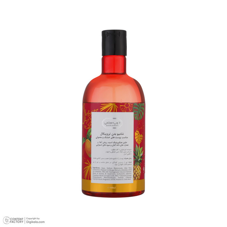 شامپوهای بدن فرمولاسیون ملایم تری دارد و بعد از استفاده مثل صابون پوستتان را خشک نمی کند و موجب کشیدگی و خارش پوست نمی شود، بنابراین بهتر است شامپو بدن را جایگزین صابون کنید.شامپو بدن دیپ سنس مخصوص پوست های خشک و معمولی شوینده و پاک کننده ای غیرصابونی است و دارای PH سازگار با پوستتان می باشد که علاوه بر قدرت پاک کنندگی بالا و کف مناسب، باعث آبرسانی به پوست بدن و مانع از ایجاد حس خشکی و التهاب می شود. این شوینده بدن حاوی عصاره های میوه های استوایی، دانه کتان، روغن آملا و هیالورونیک اسید می باشد که همراه با رایحه لذت بخش، به افزایش طراوت، نرمی، لطافت و شادابی پوستتان کمک زیادی می کند. .شامپو بدن دیپ سنس مخصوص پوست های خشک و معمولی برای چه کسانی مناسب می باشد؟ اگر پوستتان خشک و نرمال است و یک شوینده خوب برای شستن بدنتان می خواهید، شامپو بدن دیپ سنس مخصوص پوست های خشک و معمولی برایتان بهترین انتخاب می باشد.