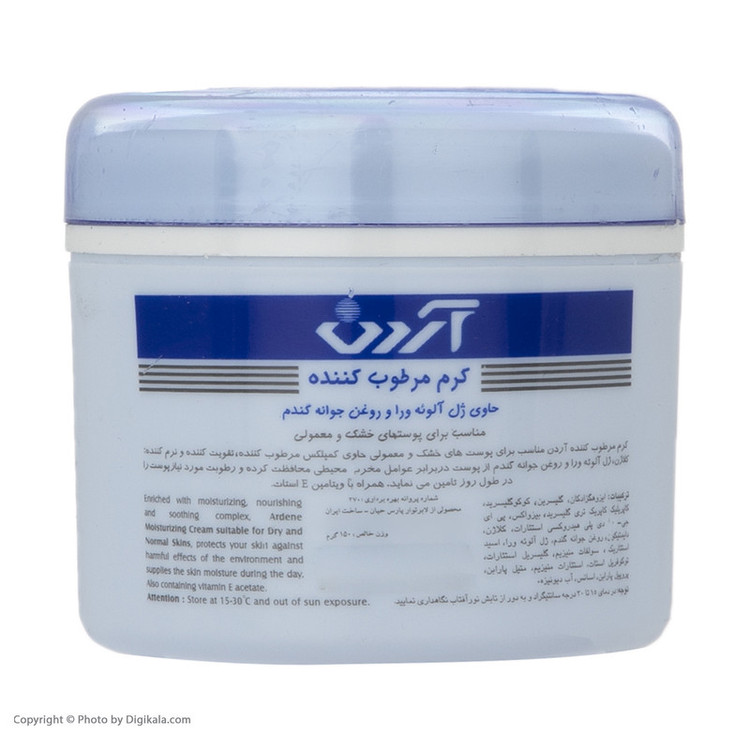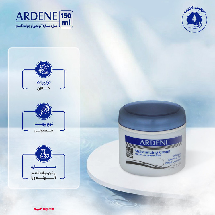 کرم مرطوب کننده یکی از مهمترین ابزارهای مراقبت از پوست است که توصیه میشود به صورت روزانه از آن استفاده شود. کرمهای مرطوب کننده، پوست دست را از خشکی، خارش، سوزش و زخم شدن محافظت میکند و سبب ایجاد پوستی لطیف و درخشان برای شما میشود. کرم مرطوب کننده کاسهای آردن یک انتخاب عالی برای مراقبت از پوست است. آردن یک برند نام آشنا در حوزه محصولات آرایشی و بهداشتی است که سابقه درخشان آن باعث شده تا افراد بسیاری از آن به عنوان یک محصول با کیفیت در طول سالیان متمادی استفاده کنند. کرم مرطوب کننده آردن با عصاره آلوئه ورا و جوانه گندم مناسب برای پوستهای خشک و معمولی است. این کرم حاوی کمپلکس مرطوب کننده، تقویت کننده و نرم کننده همراه با کلاژن، ژل آلوئه ورا، روغن جوانه گندم است که از پوست در مقابل عوامل نامطلوب محیطی محافظت کرده و رطوبت مورد نیاز پوست را در طول روز تامین میکند. همچنین این کرم همراه با ویتامین E استات است.