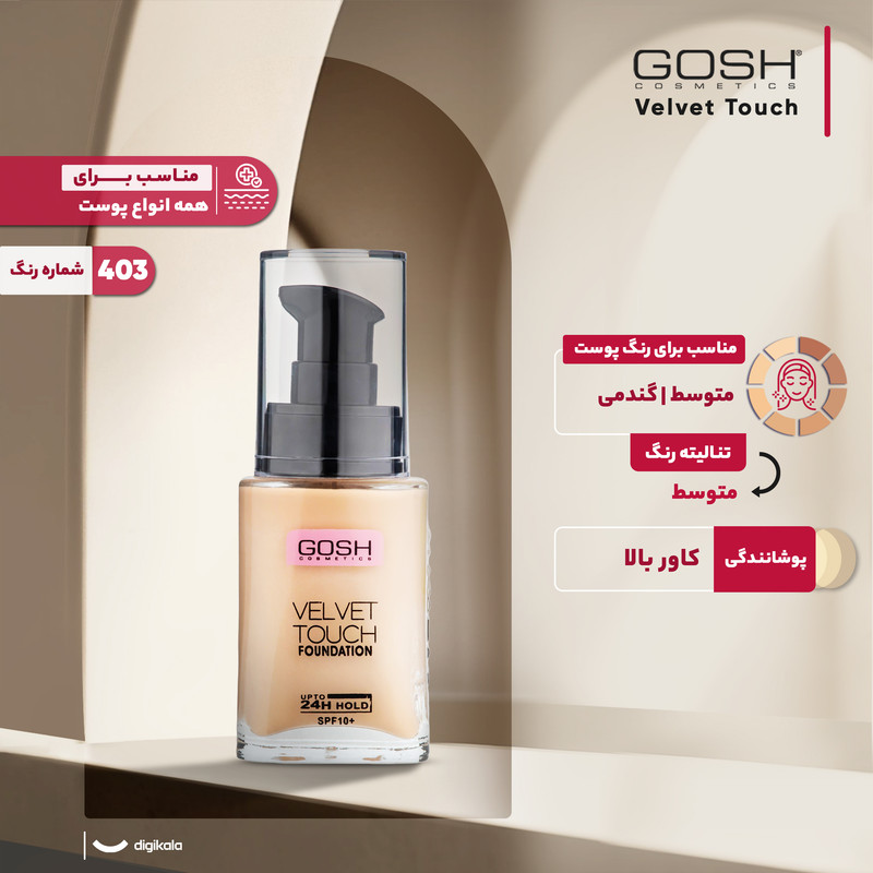 کرم پودر مایع SPF 10 گاش مدل Velvet Touch شماره 403 مناسب انواع پوست حجم 34 میلی لیتر