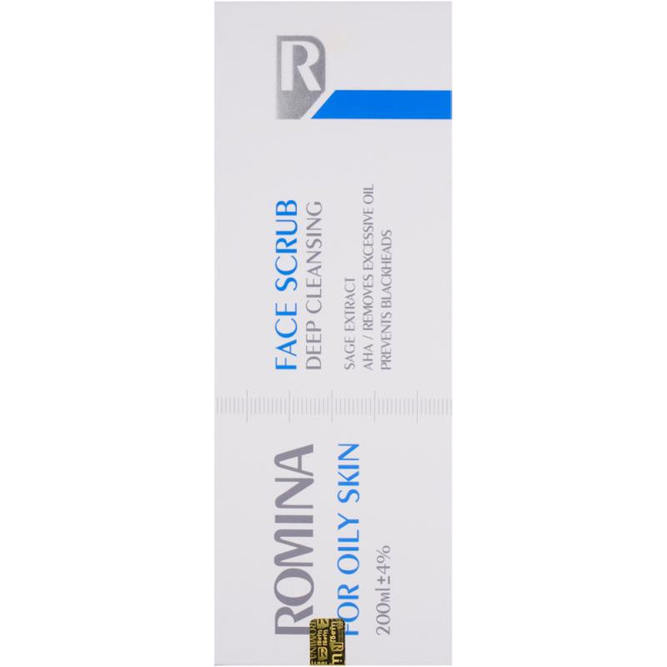 اسکراب محصولی برای لایه برداری و پاک سازی عمیق پوست است و طی فرآیندی سلولهای مرده را از سطح پوست برداشته میشوند. اسکراب صورت رومینا مناسب پوست چرب از بین برنده چربی اضافه پوست صورت و از بین برنده جوش های سرسیاه پوست حاوی AHA با فرمولی موثر و چند منظوره حاوی ترکیب شناخته شده ضد جوش سالیسیلیک اسید (2%) است که جوش های سر سیاه را پاک سازی نموده و از تشکیل جوش های جدید جلوگیری می کند.این اسکراب با دارا بودن عصاره های مریم گلی، گیاه آجوگا یا لبدیسی با ملایمت عمل لایه برداری پوست را انجام داده و مواد زائد سلول های مرده و چربی سطح پوست را زدوده و پوستی زیبا،شاداب صاف و نرم بدون جای جوش را نمایان می کنند.با استفاده از این اسکراب طی فقط 2 روز استفاده،کاهش تعداد جوش های سرسیاه را تجربه کنید.